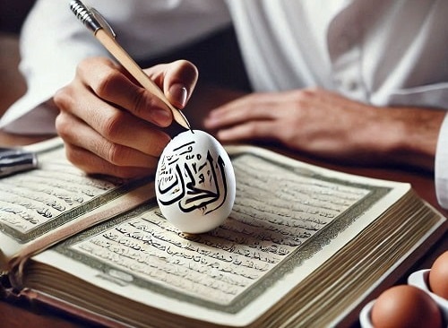 هنگام شکستن تخم مرغ گفته میشود: «بسم الله و بالله و بر اسم الله و اسم العین».