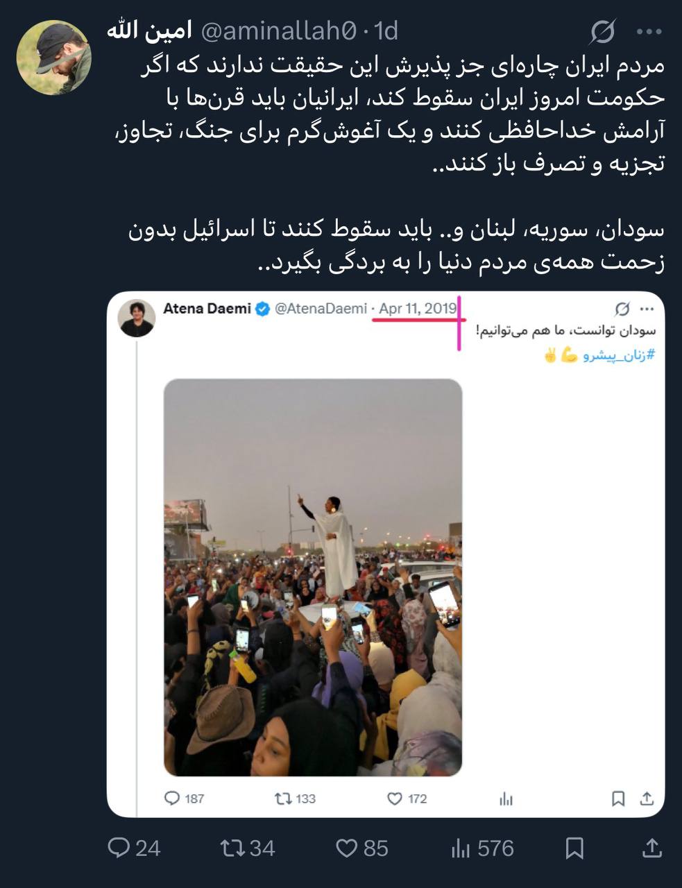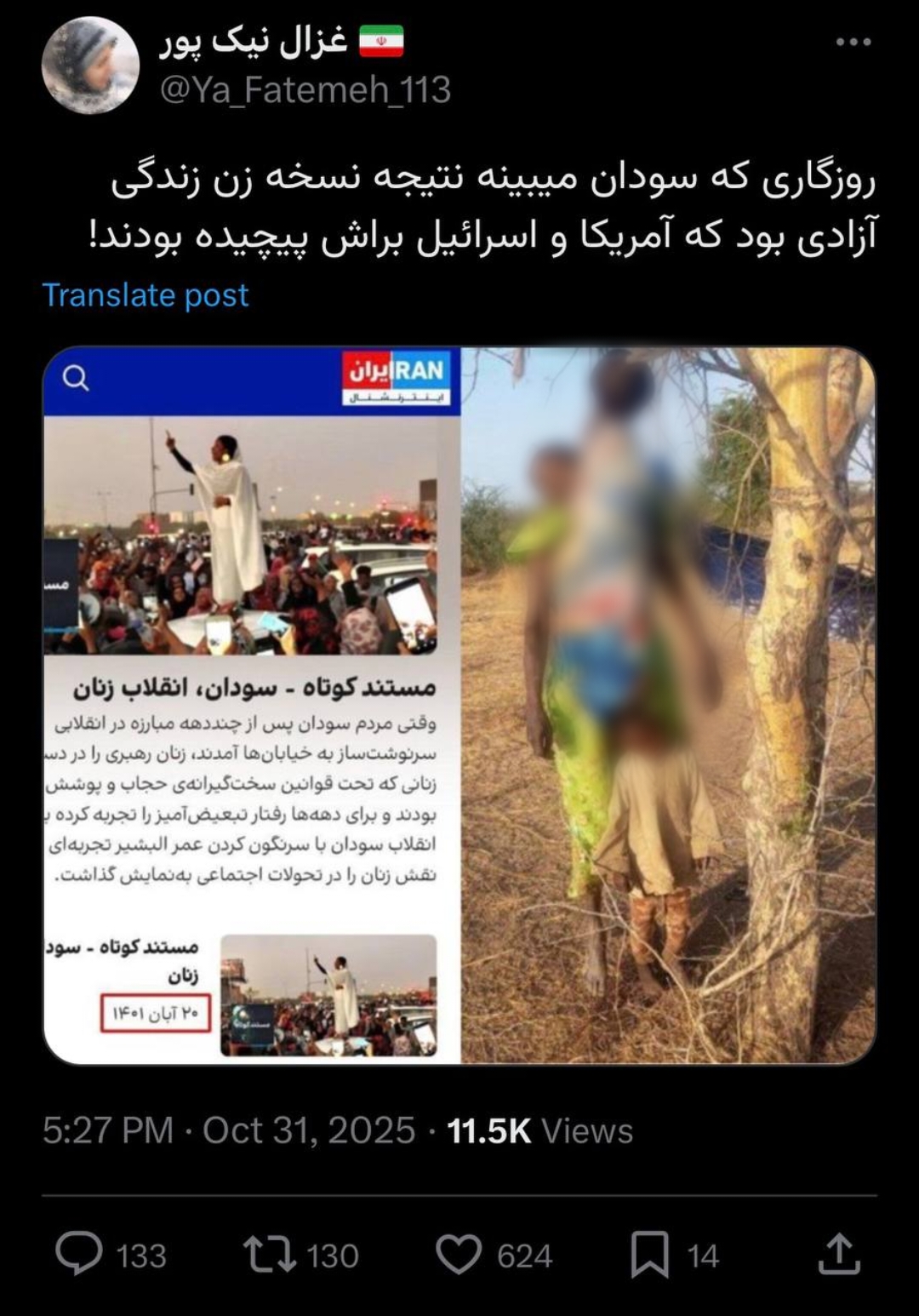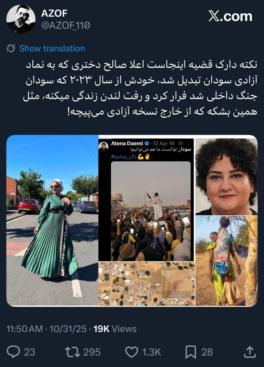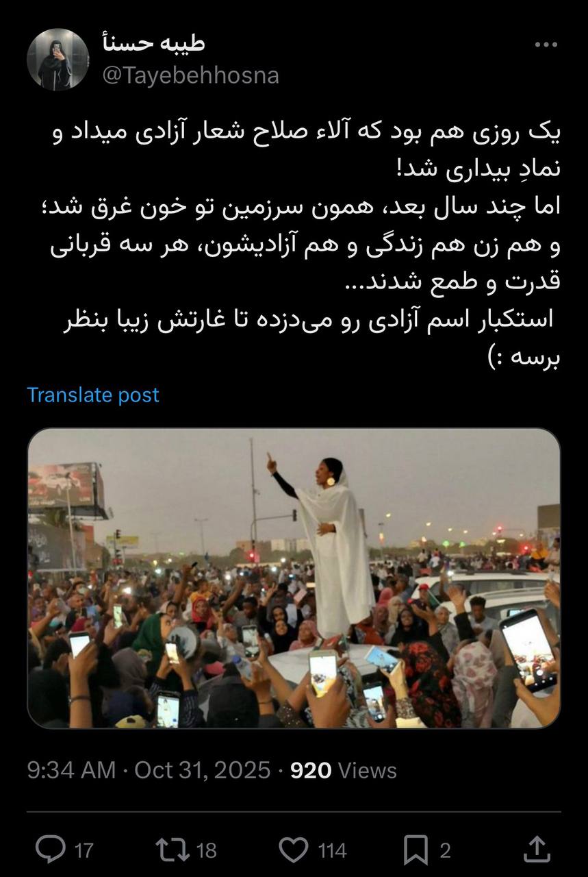 مقایسهی جالب بعضی از کاربران بین حوادث ۱۴۰۱ ایران و مهسا امینی و جنبش به اصطلاح آزادیبخش آلاء صالح در سودان: